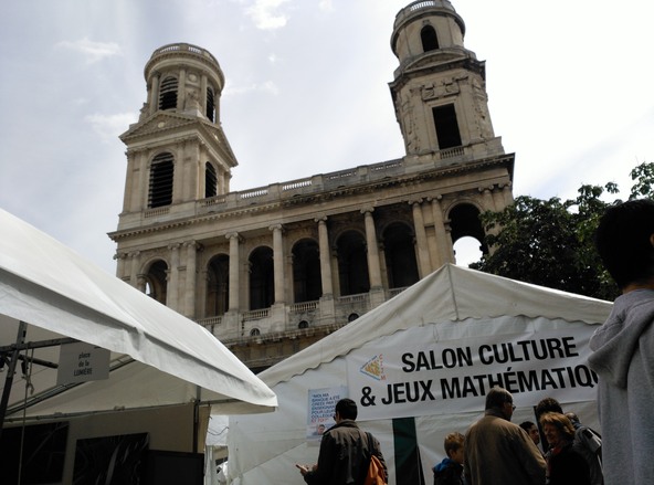 The leitmotiv of this year is Mathematics and Light, coinciding with the UNESCO international year of Light. The main event of the Salon is the public fair that occupies the Place St Sulpice in Paris, with more than 60 stands from associations, toy-makers, artists, artisans, schools, museums and more, all with mahtematical insights and challenges to the public. Special events include an exhibition Place de la Lumière; spectacles and meetings about astronomy, optics, colors, etc; a speed-meeting “métiers des maths” featuring professionals linked to mathematics; and several math games competitions around the stands.