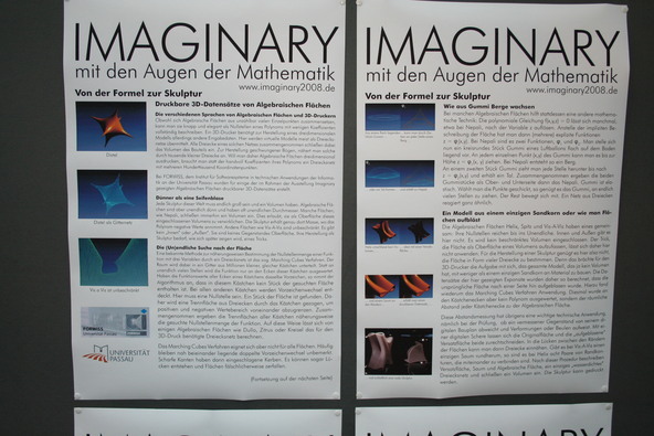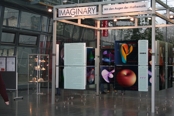 Die erste IMAGINARY-Ausstellung findet auf dem Campus Garching der Technischen Universität München statt. Ausgestellt wird der IMAGINARY-Würfel mit 39 Bildern algebraischer Flächen, eine Vitrine mit mehreren Ausstellungsstücken, eine Filmstation und drei interaktive Stationen, wo Bescherinnen und Besucher mathematische Software ausprobieren können. Schulklassen und Einzelbesucherinnen und -besucher können sich von Studenten der TU München durch die Ausstellung führen lassen.