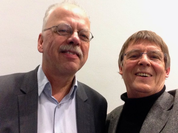 Professor Gert-Martin Gruel (IMAGINARY Scientific Advisor, right) with Götz Kersting( Professor of mathematics, left)