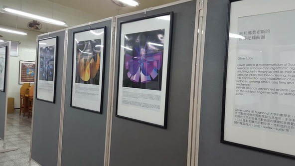 The Mathematical Society of the Republic of China (Taiwan), abbreviated as TMS, introduced the exhibition, “Imaginary”, originated from Mathematisches Forschungsinstitut Oberwolfach in Germany, and held two exhibitions in Taiwan. After the two successful exhibitions “Imaginary: Infinity and Beyond” at National Science and Technology Museum in Kao-hsiung (from December, 2015 to February, 2016) and at National Taiwan Science Education Museum in Taipei (from March to May, 2016), TMS designed a small-scaled exhibition going to high schools, where roughly 30 select items from Imaginary, some 3D geometry statues, and some computers and monitors with the free software SURFER which generates 3D surfaces by simple algebraic equations are presented.