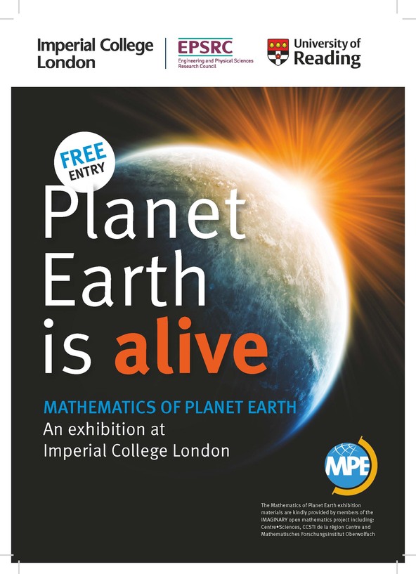 Our planet is a complex system with multiple facets including the physical (such as the atmosphere, the oceans, the soil and the ice sheets), biological (e. g. biodiversity, aquaculture, carbon cycle) and the human side (e. g. urban climates, power systems and social media). It is also a system at risk. The planet’s capacity to support life as we know it is in danger. The stability of the systems supported by Planet Earth is threatened by rapid changes in the balance between climate and the Earth constituents: atmosphere, oceans, rivers, the chemistry of earth components and many others. Human activity has grown to the point that it influences directly the global climate. It now has a strong impact on the capacity of the planet to be self-sufficient and threatens the stability of the systems supported on it. The challenges that our planet and our civilisation are currently facing cannot be addressed only by separate scientific endeavours. Instead, our efforts must be multidisciplinary, and their common language is mathematics. The mathematical sciences play a leading role in the joint effort of researchers to understand and quantify the challenges we face, and look for solutions. ‘Mathematics of Planet Earth’ is an international exhibition displaying exhibits, videos and computer programs. Collectively these illustrate how mathematics plays a role in answering essential questions that concern our planet. In graphics visualisations and hands-on experiments you will discover the contributions that mathematics makes to topics such as astronomy, fluid dynamics, seismology, glaciology and cartography.