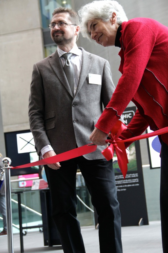 Prof. Dan Crisan of ICL and Prof. Christiane Rousseau cutting ribbon on opening ceremony.