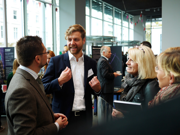 Ruth Wetzlar and Christiane Schirock from Heidelberg Laureate Forum with Prof. Dan Crisan and IMAGINARY team member Robert Wöstenfeld at the opening.