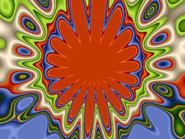 This image is generated by a simple program based on defining the color of each pixel using polar coordinates of the actual pixel combined with random values of constants which represent the genetic code of each program cycle. At the beginning of each cycle the program defines a coloring palette, a random path through algorithms and a genetic code composed of 24 random values. Then each pixel is elaborated by going from the center towards the border. On every pixel a kind of mathematical “symphony” is performed, the result is the color of the actual pixel.