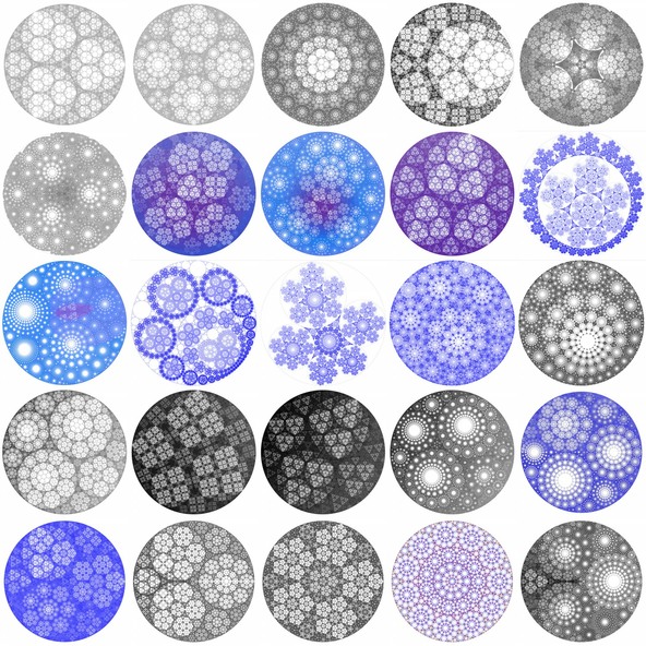 This example also uses a Mobius transform, which slightly alter the circle disposition. Mobius transforms preserve circle and tangency between circle. There are then good tools to add some variations when generating the designs.
