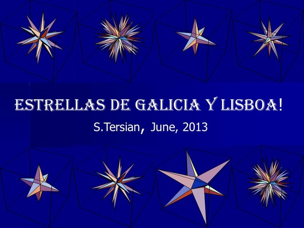 I made a Gallery 2, named “Estrellas de Galicia y Lisboa”. It became after Gallery 1, inspired by the exhibition of Imaginary at Santiago de Compostela, Spain. I was motivated by several images with mathematical content and stars which I met during my visit in Santiago de Compostela and Lisbon. They are completed by plots of stellated and truncated polyhedrons and stars made by Mathematica.