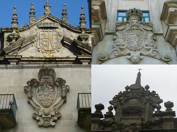 Coats of arms with stars on buildings in Santiago de Compostela, Spain.