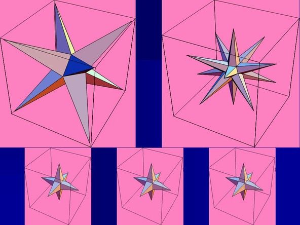 Stellated Octahedron, Stellated Dodecahedron, Stellated Hexahedrons. Made by Mathemaica package Graphics’ Polyhedra.