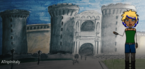 There is a string attached to two nails. The string is stretched using chalk; when the chalk slides along the string, an ellipse is drawn.