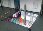 There is a string attached to a nail and to the top of a set-square that is resting on a ruler (not touching the nail). With the chalk the string is stretched and pushed against the set-square: when the set-square slides on the ruler, the chalk draws a parabola arc.
