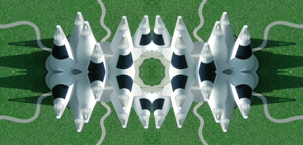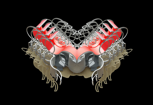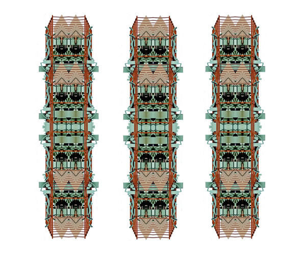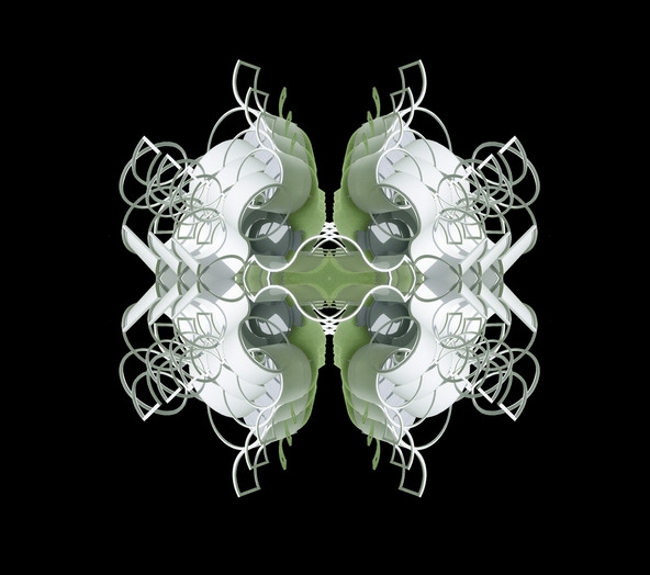 Super Symmetry is a series of my digital photos that are derived from images of physical models that I make of my architectural designs. In most cases, the original image is manipulated with a computer (through the use of Photo Shop) in order to create a new image. Some times these new images are once again made into three dimensional structures, in an attempt to discover unexpected new forms. Often the new three dimensional forms are photographed once again in order to create more images. In every case, the objective is to create images that celebrate the beauty of complexity.