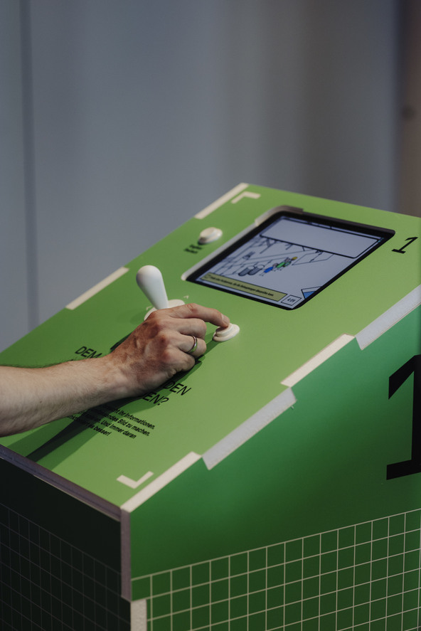 The interactive experience offers easy and enjoyable access to topics surrounding news and information, inviting visitors to experiment, explore, and educate themselves. IMAGINARY developed the interactive game Citizen Quest for this exhibition. In the game, visitors work together to complete tasks in a fictional city, discovering that the challenges of navigating information can be addressed collaboratively and constructively. The game explores topics such as disinformation and civic participation, while also posing broader questions like: Who owns urban space?