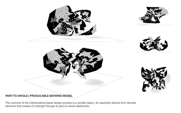 The BatWing sculpture represents a tangible way to approach mathematics. The sculpture, based on a triple periodic minimal surface, physically expresses the forces inside the structure to give visitors an appeal to applied geometry solutions.