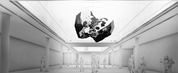 The BatWing sculpture was conceived during the Math Creations Competition 2017, were BART//BRATKE in collaboration with StudioDE won with their concept for a triple periodic minimal surface to be constructed from single load bearing stripes. As the piece rises at the center of the exhibition, expressing tensile forces along the way, a juxtaposition is revealed between the elements’ coloration strategy. The play on the curvature of the surfaces varies perception, allowing the sculpture to be read in multiple ways while experiencing it from different angles.