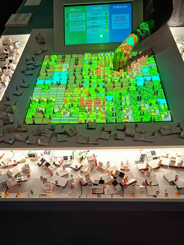 The “Future Landscape Simulator” turns abstract global challenges like urban development, food production, and nature conservation into concrete choices: How does unchecked urban growth reshape the future? What changes would happen if forests were brought back on a large scale? And what are the consequences if intensive farming persists or transforms into more sustainable methods?