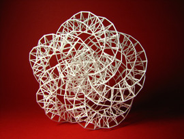 Inverted quaste surfaces on a spiral & double sphere composition.