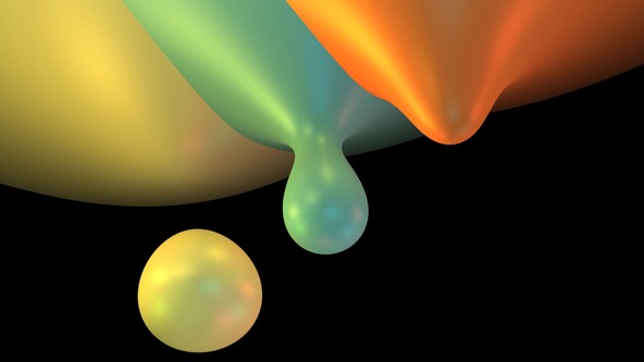 Here, three of such algebraic surfaces are seen, each having slightly different parameter values. The droplets actually ‘drop’ at different values of the parameters.