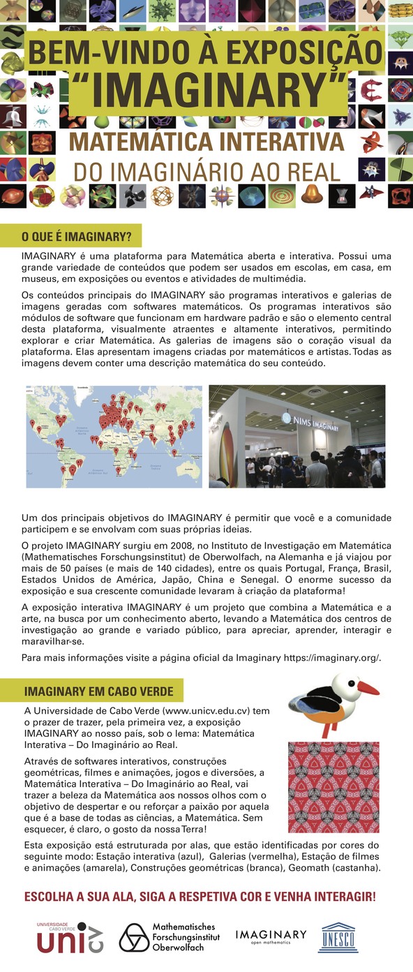 For the first time IMAGNARY will be shown in Cape Verde. Come along and have a look at the University Campus while also emerging yourself in the world of Mathematics with this IMAGINARY exhibition.