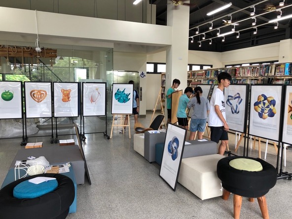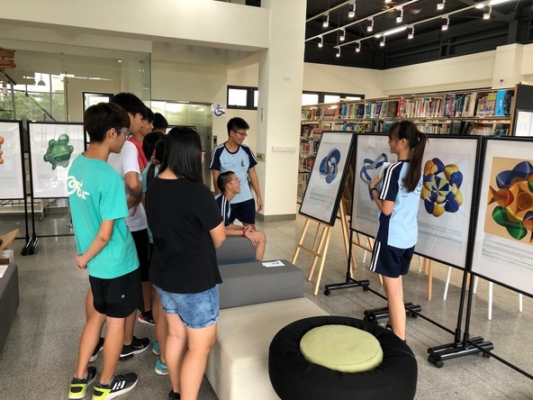 The Mathematical Society of the Republic of China (Taiwan), abbreviated as TMS, introduced the exhibition, “Imaginary”, originated from Mathematisches Forschungsinstitut Oberwolfach in Germany, and held two exhibitions in Taiwan. After the two successful exhibitions “Imaginary: Infinity and Beyond” at National Science and Technology Museum in Kao-hsiung (from December, 2015 to February, 2016) and at National Taiwan Science Education Museum in Taipei (from March to May, 2016), TMS designed a small-scaled exhibition going to high schools, where roughly 30 select items from Imaginary, some 3D geometry statues, and some computers and monitors with the free software SURFER which generates 3D surfaces by simple algebraic equations are presented.