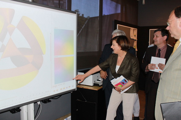 RSME-IMAGINARY in Granada includes the exhibition “Mathematics of Alhambra”. A talk by Brian Conrey, director of the American Institute of Mathematics (AIM) followed to the opening in Parque de las Ciencias Museum on June 15th. The exhibition was inaugurated by María Dolores Suárez (Vicepresident of Scientific Policy of Granada University), María José Sánchez (Delegate of president of Andalusian Government), Eduardo Caracuel (Delegate for Institutional Relations and Patrimony of Granada Community) and Ernesto Paramo (Director of Parque de las Ciencias).