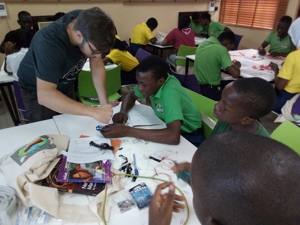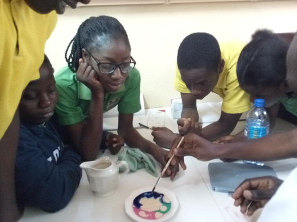 This is a workshop of the Science Spaces Series. Teams of high school students from several schools of Agbara Ogun State, together with guides from IMAGINARY, develop science exhibits, which will be presented after the workshop in their schools. The workshop is organized by the Goethe Institute Nigeria and held at Corona secondary school.