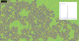 This is a 3D rendering of a solution of the Allen-Cahn equation in a rectangular domain with periodic boundary conditions. Both the z-coordinate and the color hue show the value of the solution,...