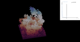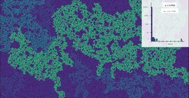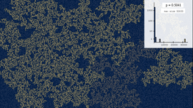 Clusters and cluster size distribution in Bernoulli site percolation on a cubic lattice, for increasing parameter p and different lattice sizes.