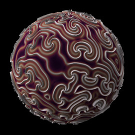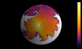 A solution of the wave equation in a domain on the Riemann sphere, which is given by the complement of an approximation of a Julia set with parameter -0.77145 -0.10295 i. The initial state is...