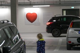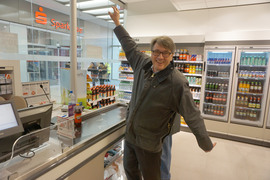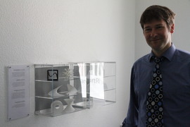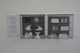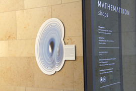 A mathematical image gallery with 13 big format prints and explanations is displayed in the general public area and the parking garage, providing unusual insights into different fields of mathematics. The conveyor belts at the cashiers in the super market invite you to playfully think about classic and modern mathematics. You can experiment yourself using the items you want to buy – juice packages, bottles, oranges, eggs… anything. There is even math in the bathroom: riddles are projected within the mirrors. Additionally, a 13 meter shop window presents a group of exhibits showing all kinds of polyhedra, starting with the platonic solids. Detailed descriptions explain the corresponding mathematical ideas and encourage you to look closer and think further.