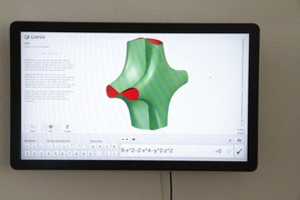 La première exposition est le programme interactif SURFER, qui permet aux visiteurs d’entrer des formules sur des écrans tactiles géants d’un doigt ou d’un mouvement rapide, de les modifier en usant de sa créativité, de définir les couleurs des surfaces émanentes ou de les retourner. Ainsi des images de surfaces algébriques sont générées d’une manière simple et évidente.