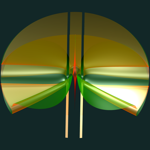 Ausstellungsstück B, ist ein interaktives Ausstellungsstück, welches die Beziehung den beiden Brennpunkte zur äußeren Linie zeigt.