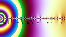 이 갤러리의 그림들은 실수축 위의 소수(prime)들을 영점으로 갖는 복소함수의 화려한 시각화를 보여줍니다. 공식은 아래에 소개됩니다.