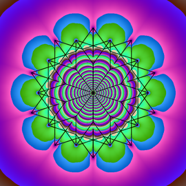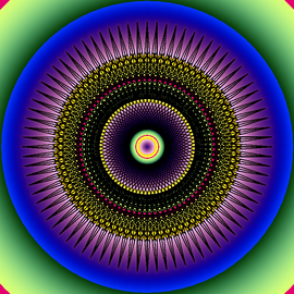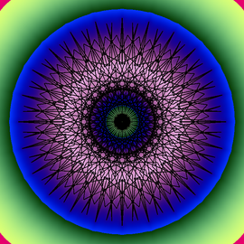 Solution of the Allen-Cahn equation for phase separation on the 2d sphere. The color hue and radial coordinate indicate the value of the field.