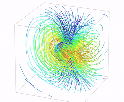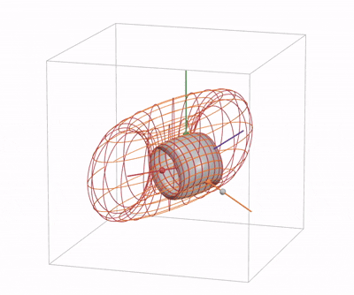 During the animation the Clifford tori get thinner as the radius of one set of circles in the tori goes shrinking while the radius of the second set increases. The limit case is radius 0 for the former, and radius 1 for the latter: the torus has become a circle belonging to the second set. Then variation inverses, at first toward ‘fatter’ tori, and then goes the opposite way, the first set of circles becoming larger and the second set shrinking. In the limit the torus is again a single circle, now of the first set.