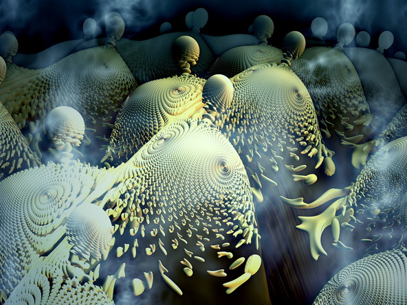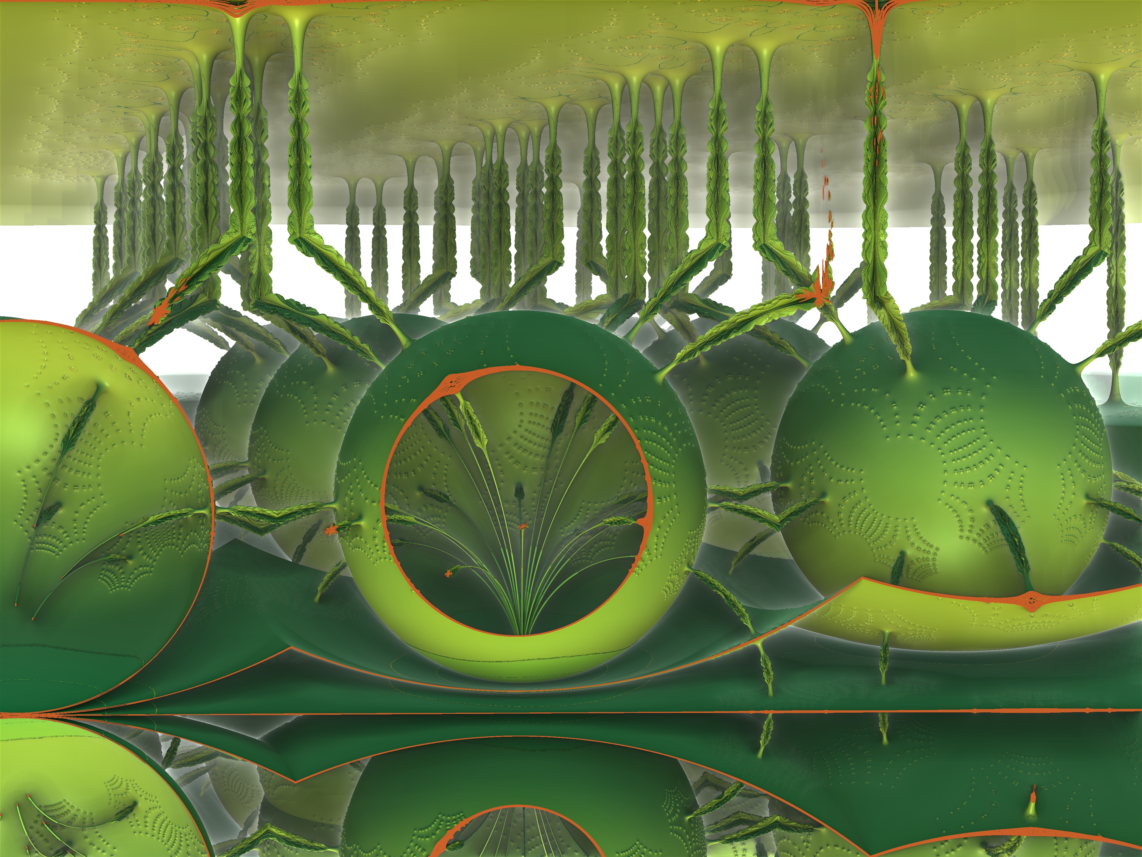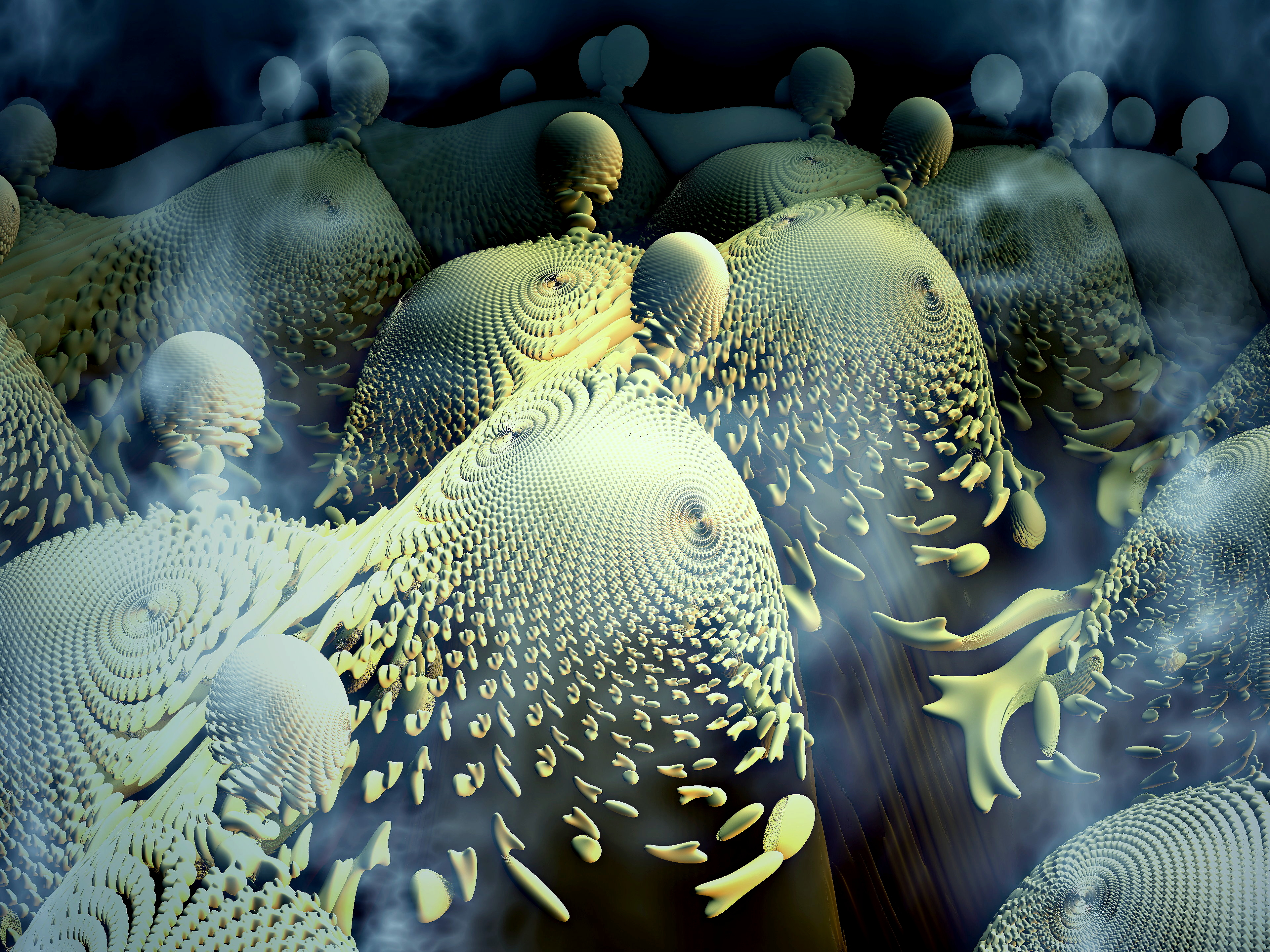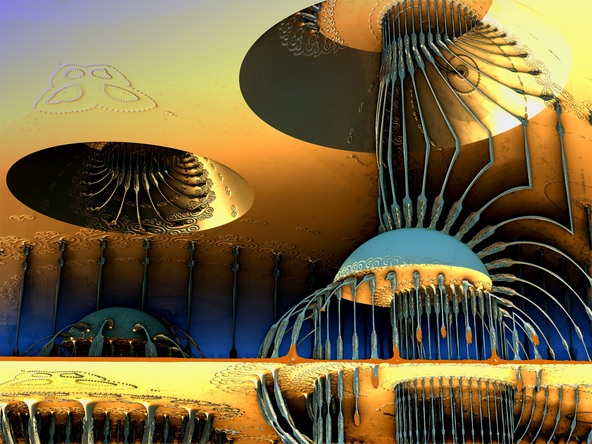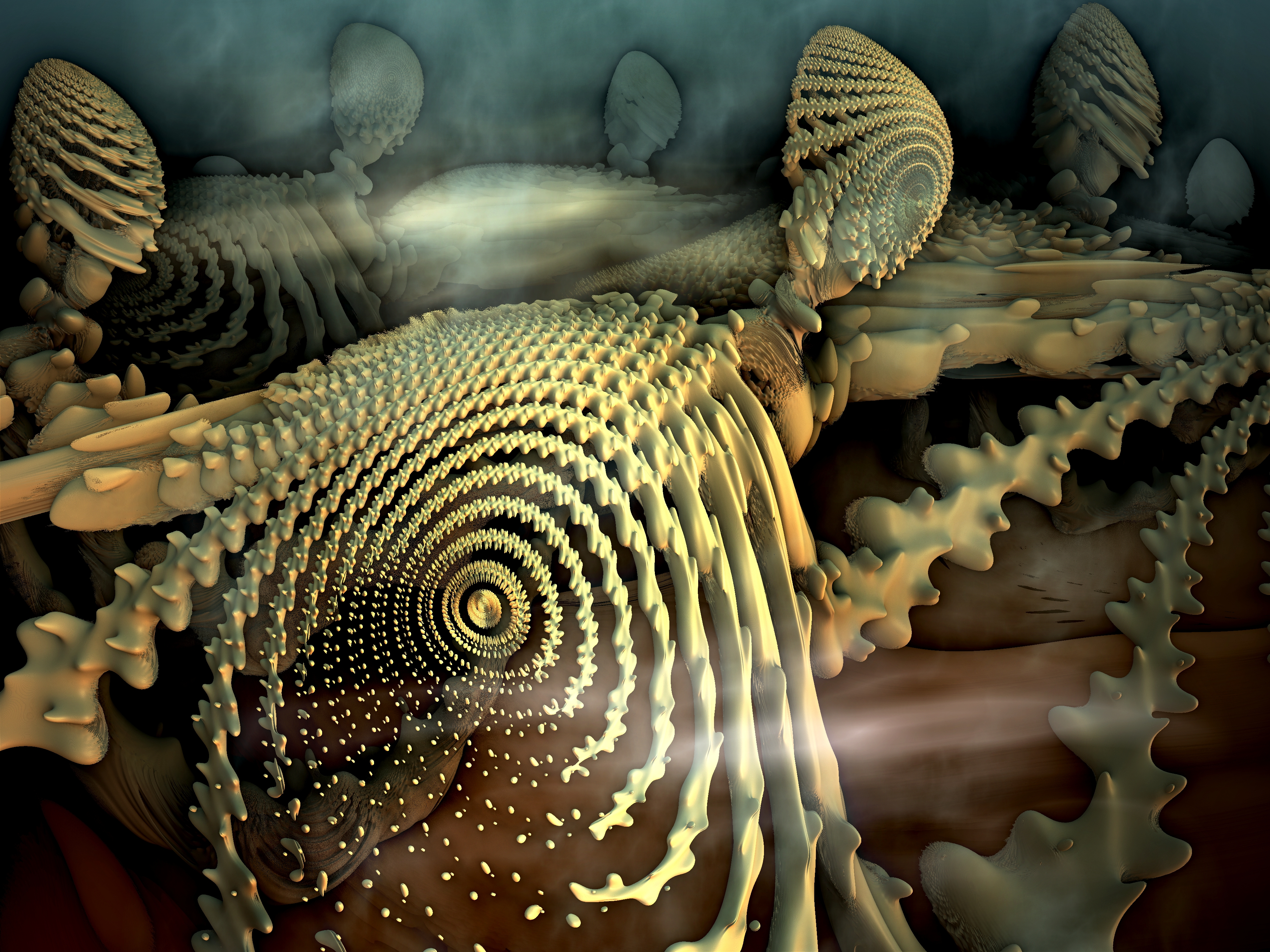 After working with the SURFER program for many years, I discovered the fractal software Mandelbulber and Mandelbulb 3D in 2011. The later became my constant companion. After experimenting at first, I gradually combined different basic fractals and variations of those to develop images following specific themes, such as ‘Views of a City’, ‘Strange Worlds’ and ‘Twelfth Night’.