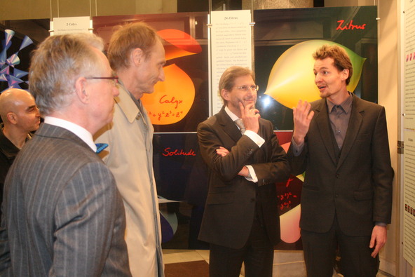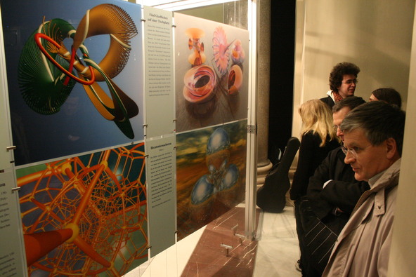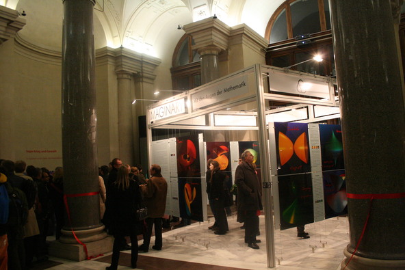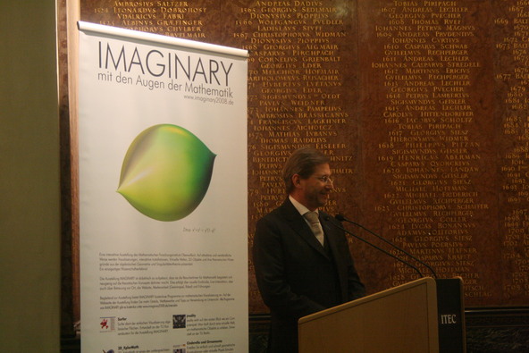 First time in Austria, IMAGINARY comes to Vienna for a three week exhibition. On March 2nd, the event is opened by Dr. Hahn, the Austrian Federal Minister for Science and Research. During the opening ceremony, there is also a lecture by Prof. Herwig Hauser who has designed many of the algebraic surfaces IMAGINARY displays.
